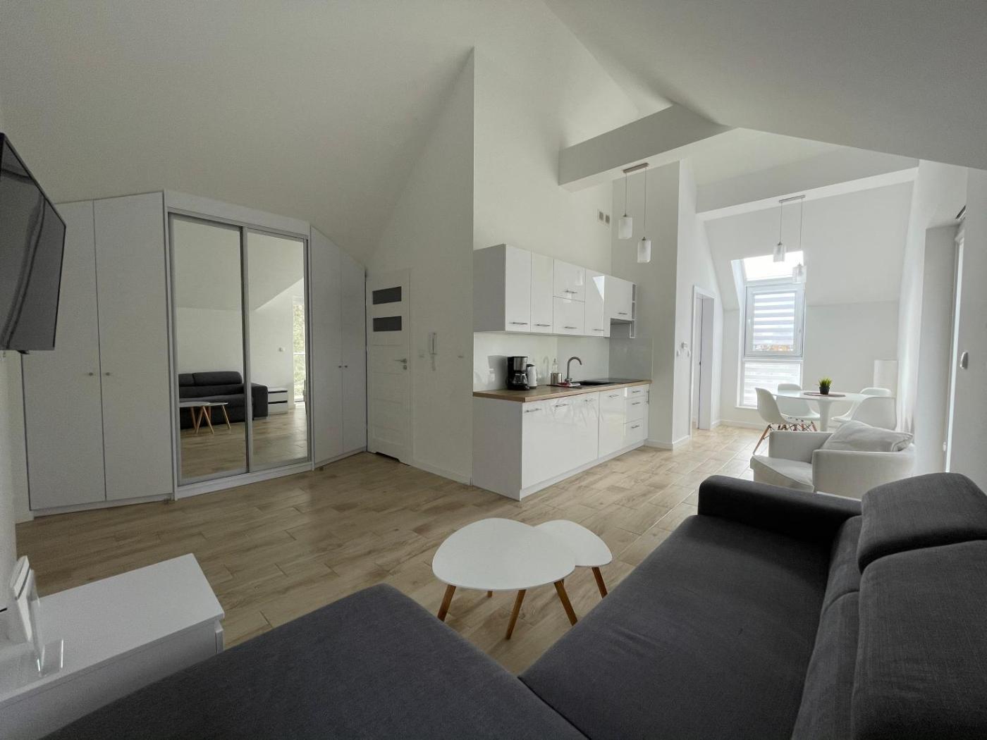 Apartament. Boasting a private entrance, this apartment includes 1 living room, 1 separate bedroom and 1 bathroom with a walk-in shower. Guests will find a stovetop, a refrigerator, a dishwasher and kitchenware in the kitchen. The apartment also features a barbecue. Featuring a terrace with sea views, this apartment also offers a tea and coffee maker and a flat-screen TV. The unit has 2 beds. Apartament - 4 osobowy. Powierzchnia pokoju ok.: 39 mkw.