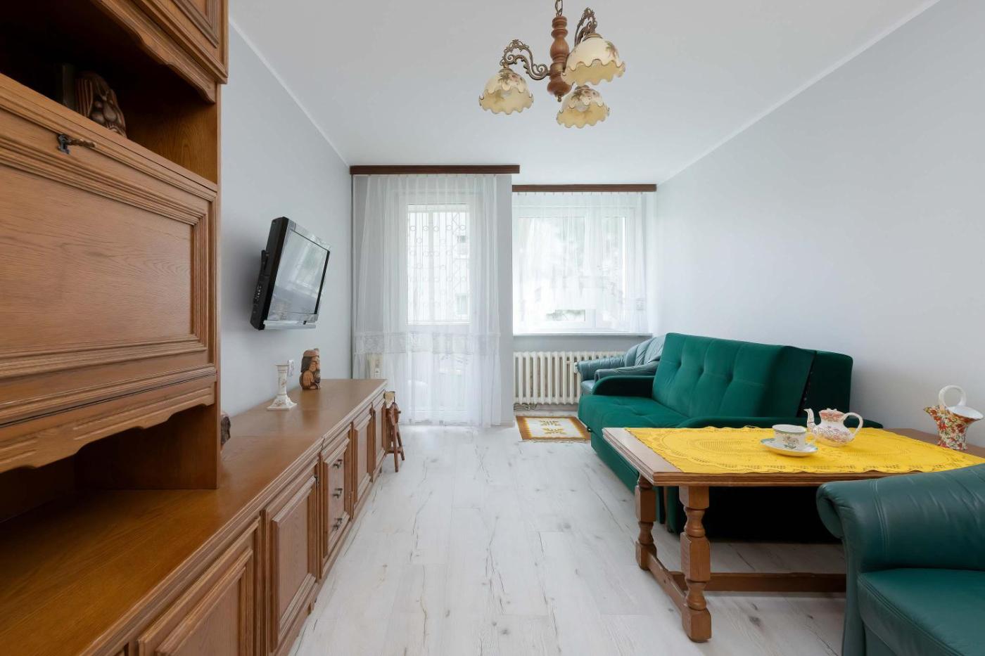 Apartament. The apartment features 2 bedrooms and 1 bathroom with a hairdryer and free toiletries. The well-fitted kitchen has a stovetop, a refrigerator, a dishwasher and kitchenware. Featuring a patio, this apartment also provides a washing machine, a private entrance and a TV with cable channels. The unit offers 2 beds. Apartament - 4 osobowy. Powierzchnia pokoju ok.: 42 mkw.